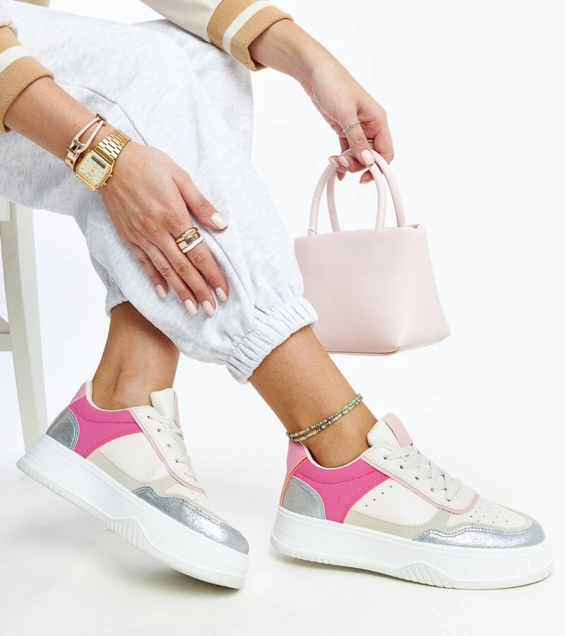 Hers Białe sneakersy na platformie z brokatowym akcentem