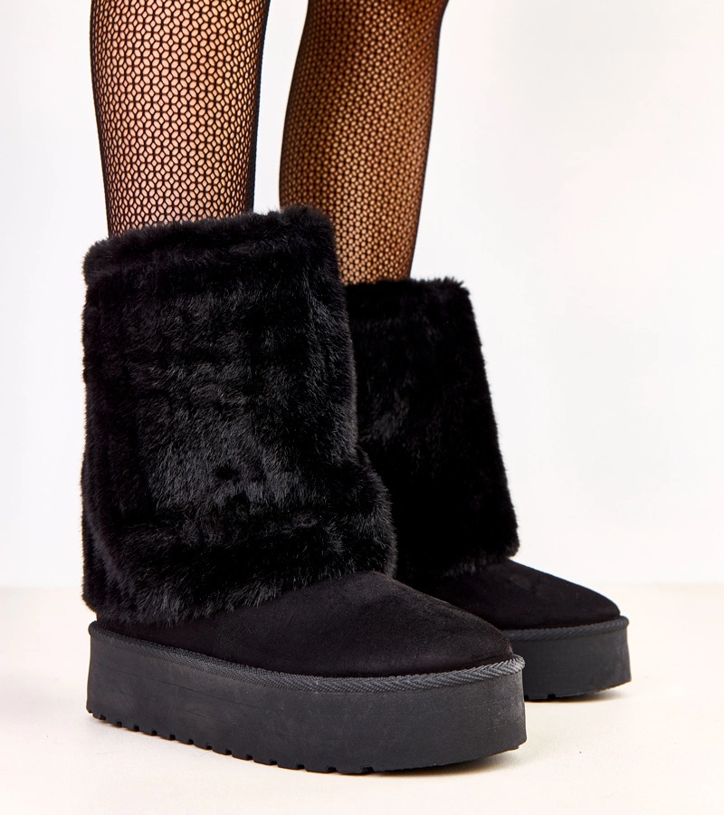 Hers Czarne śniegowce na platformie z futerkową cholewką