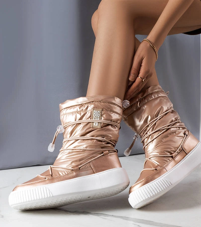 Hers Beżowe śniegowce damskie z ozdobnym sznurkiem