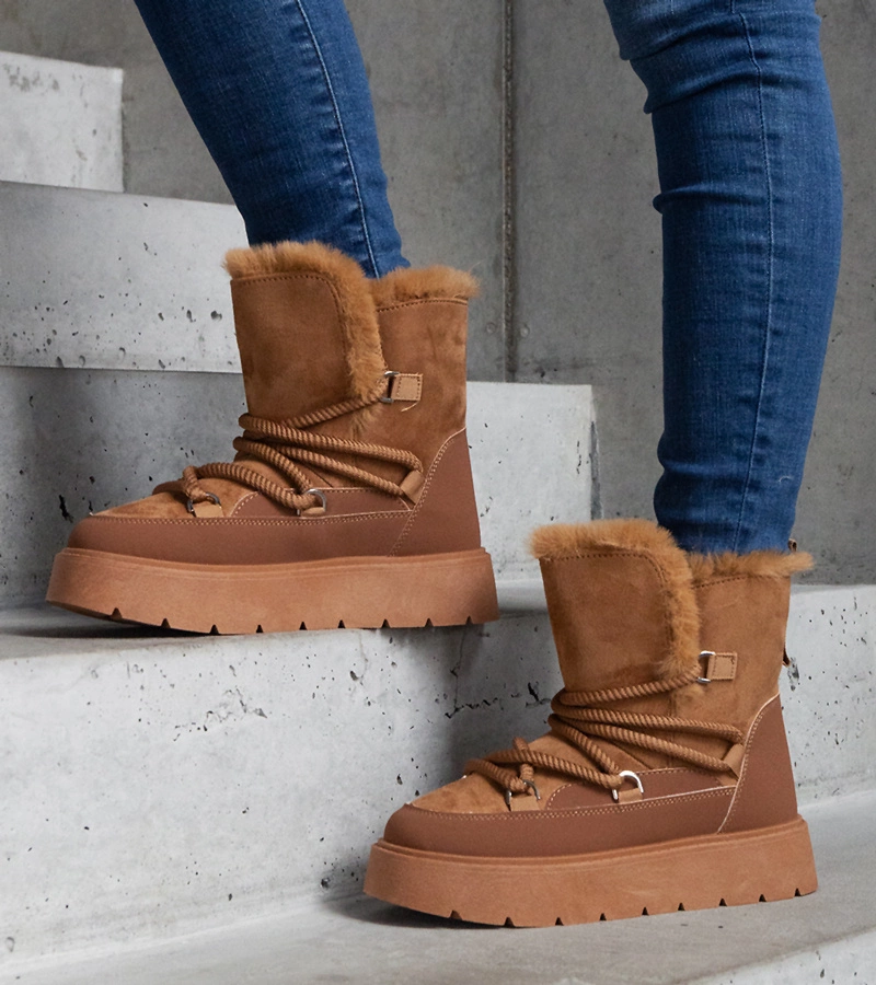Brązowe śniegowce na platformie ocieplane futerkiem