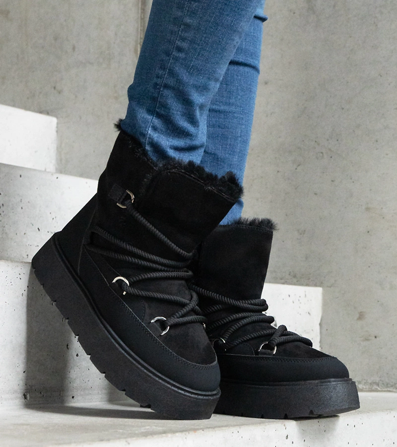 Czarne śniegowce na platformie ocieplane futerkiem