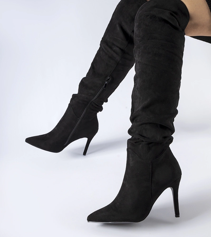Czarne wsuwane kozaki na szpilce z elastyczna cholewką