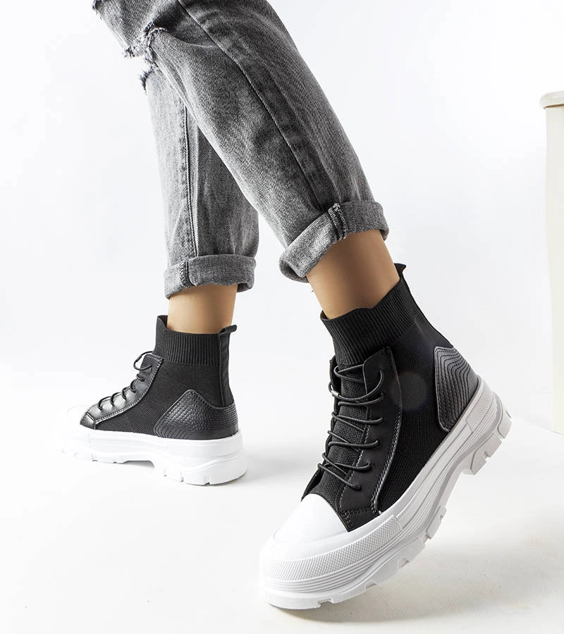 Czarne trampki na wysokiej podeszwie