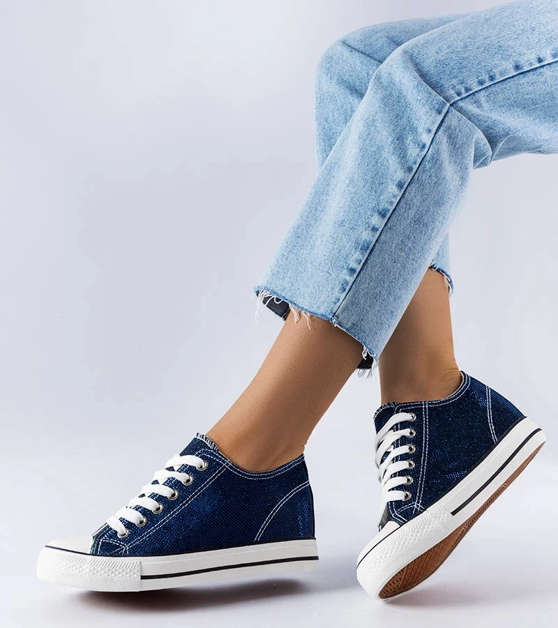 Hers Granatowe trampki na koturnie brokatowe