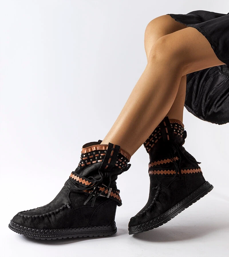 Czarne mokasyny na grubej podeszwie zdobione klamerką Vinceza