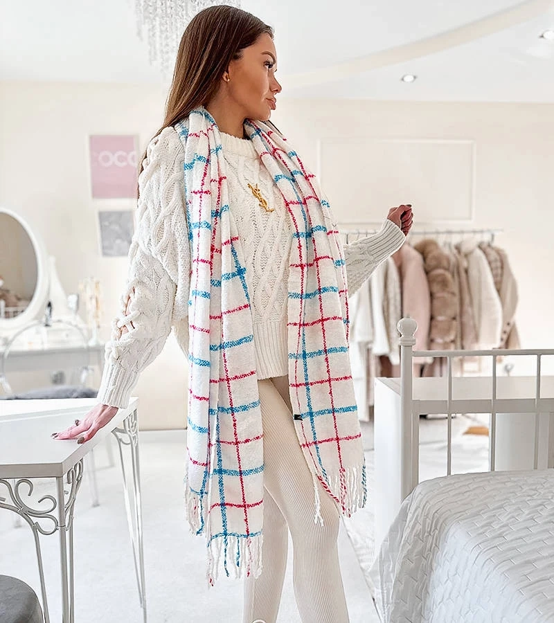 Biała sukienka w niebiesko-pomarańczowe kwiaty