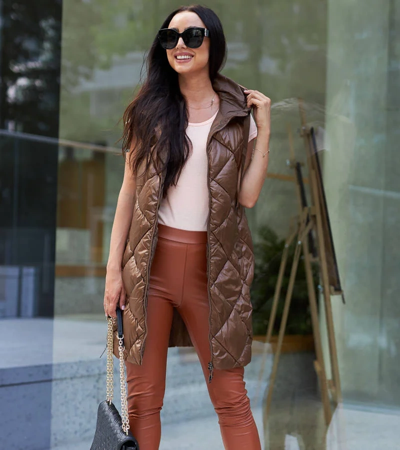 Brązowa długa połyskująca kamizelka