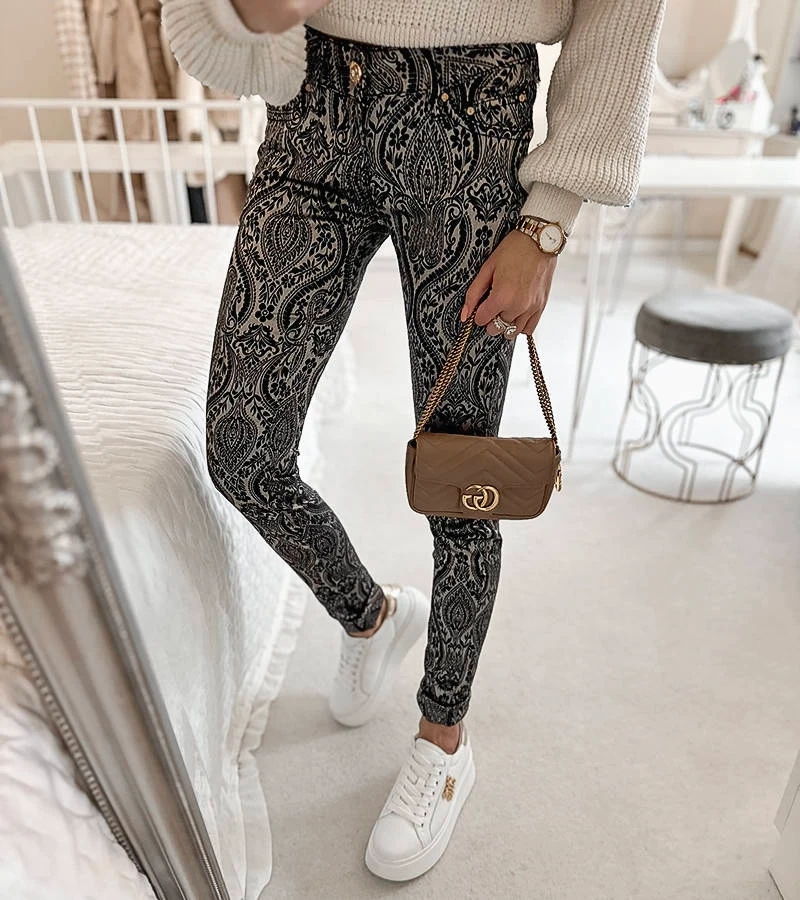 Beżowe eleganckie spodnie plisowane w kwiaty