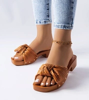 Białe klapki z kokardką na niskim klocku