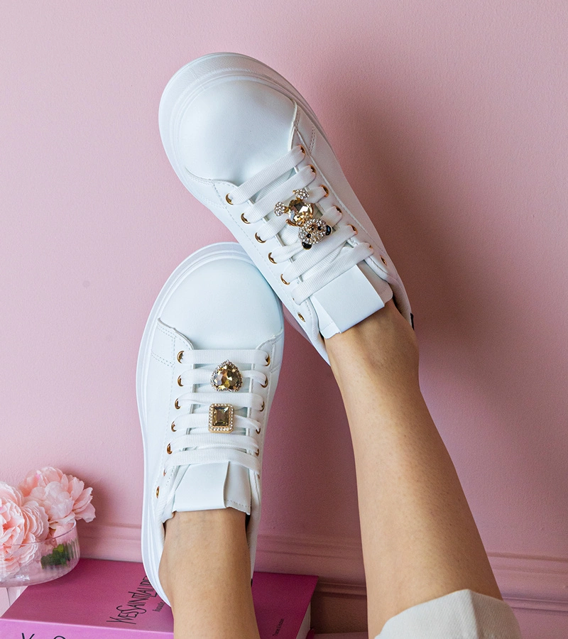 Hers Biało-czarne sneakersy damskie zdobione kamieniami