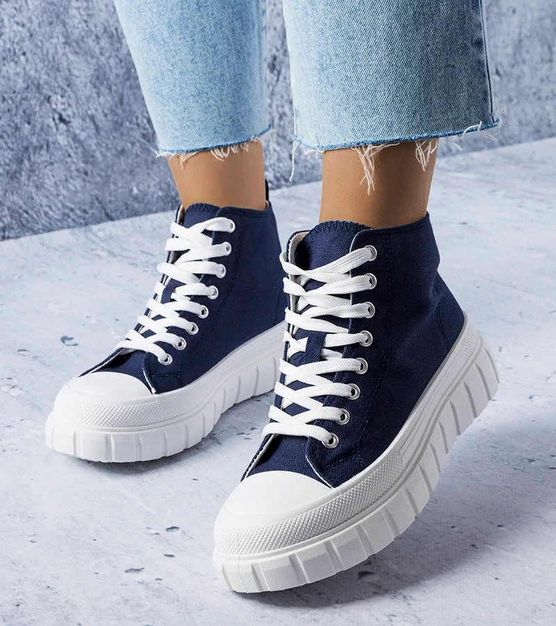 Hers Szare sneakersy z niebieskimi sznurówkami