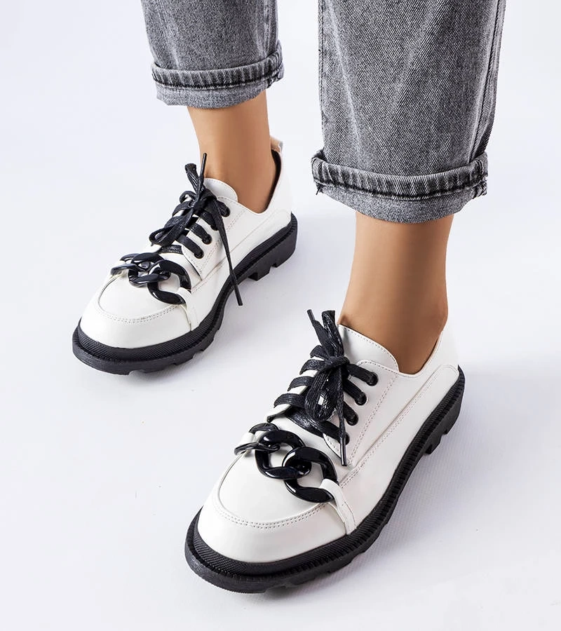 Półbuty białe ze skórzana wkładką na masywnej podeszwie
