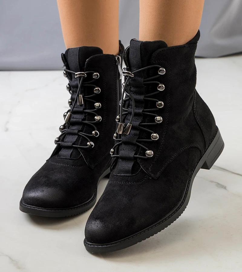 Czarne wysokie kozaki ocieplane z wiązaniem