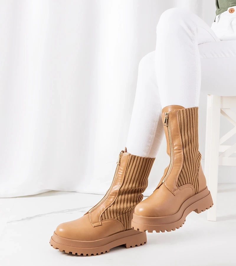 Beżowe botki na masywnej podeszwie