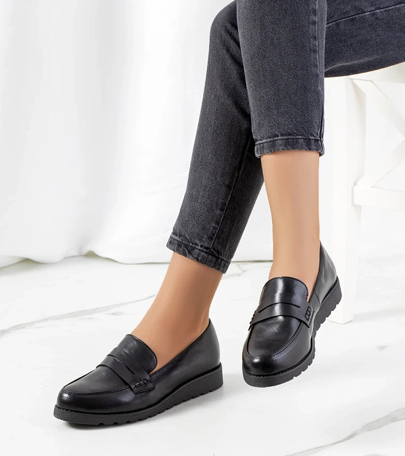 Czarne półbuty na wysokiej podeszwie