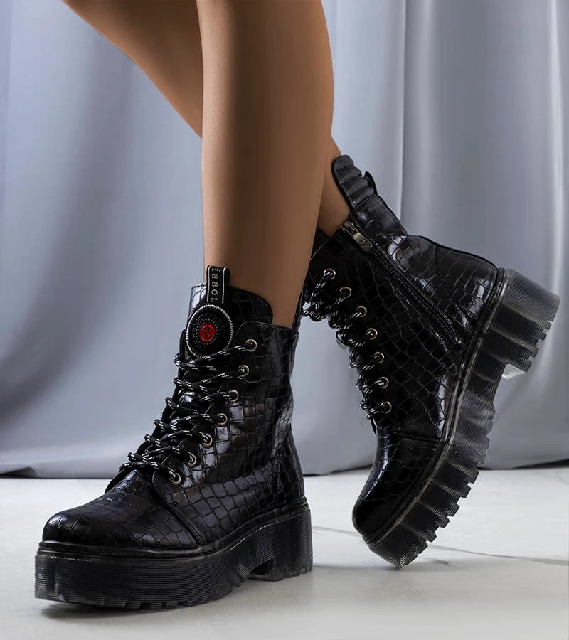 Czarne ocieplane kozaki na wysokiej podeszwie