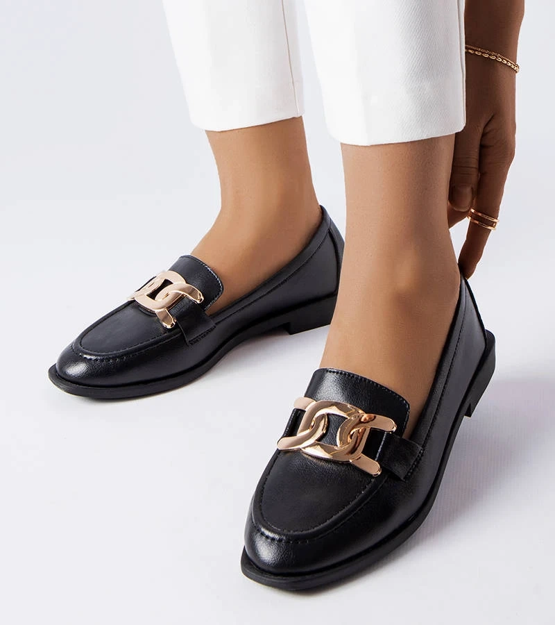 Czarne mokasyny z błyszczącą aplikacją