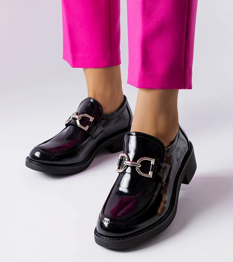 Czarne mokasyny na grubej podeszwie zdobione klamerką Vinceza