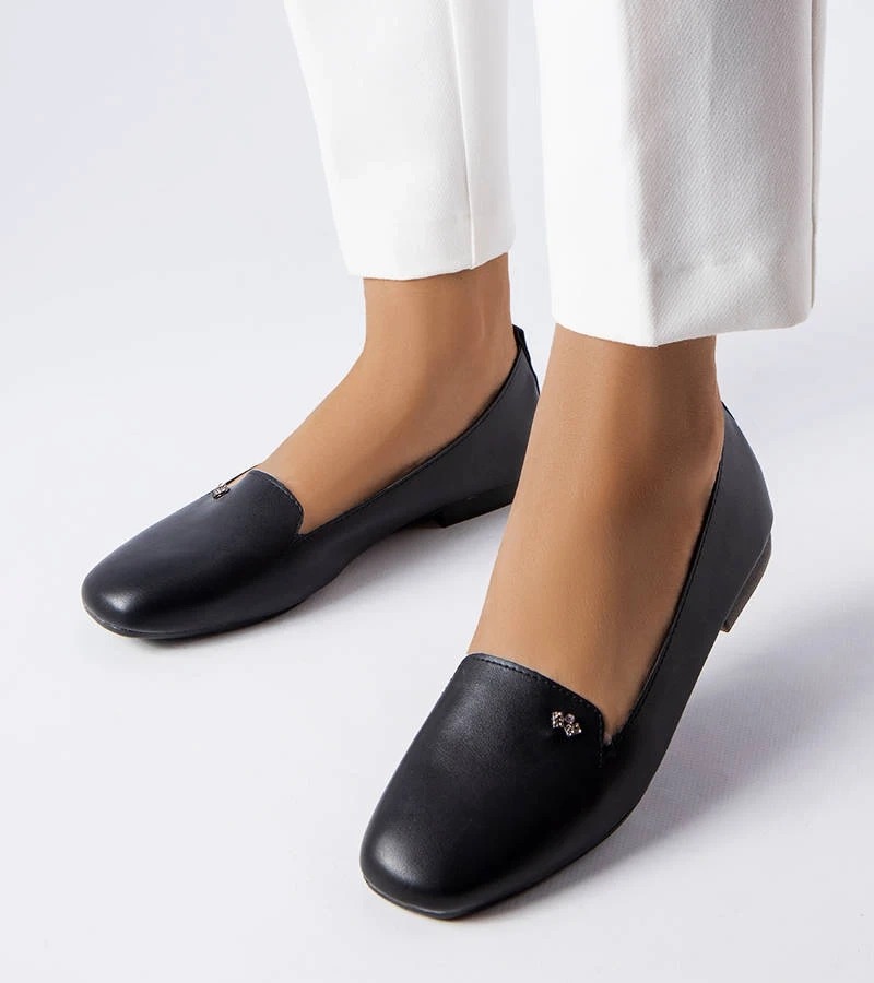 Czarne balerinki z kokardką i metalicznym wykończeniem