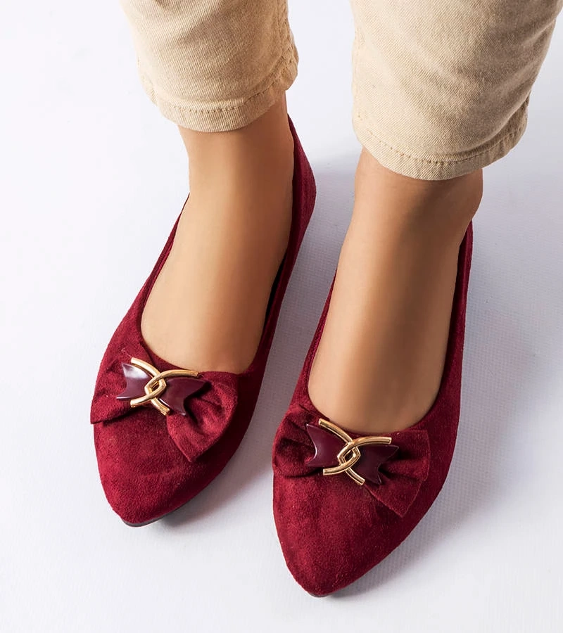 Bordowe balerinki z eko-zamszu zdobione kokardką