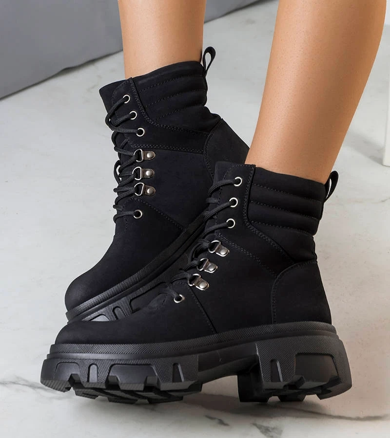 Czarne sznurowane sneakersy na podwyższonej podeszwie