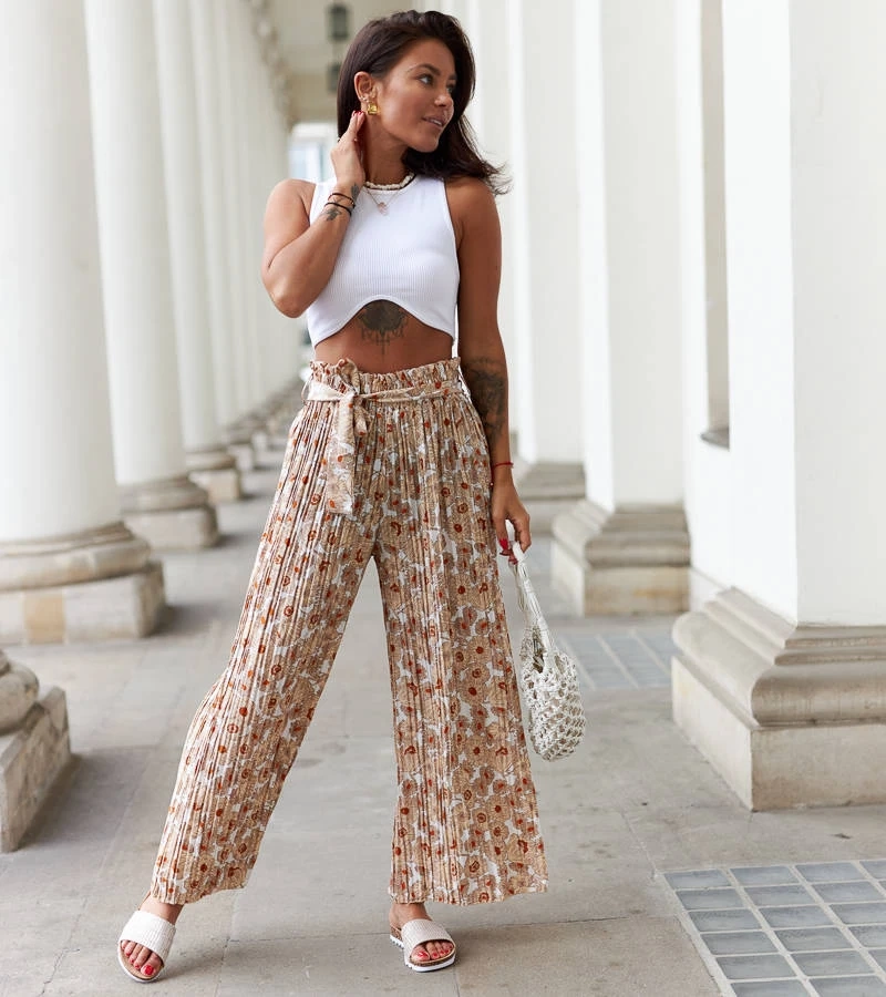 Granatowe spodnie o swobodnym fasonie w kwiaty