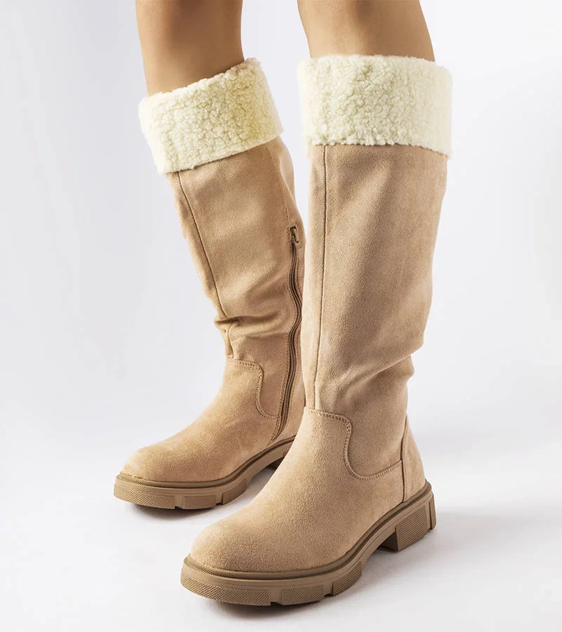 Beżowe sneakersy ze wzorzystą wstawką na koturnie