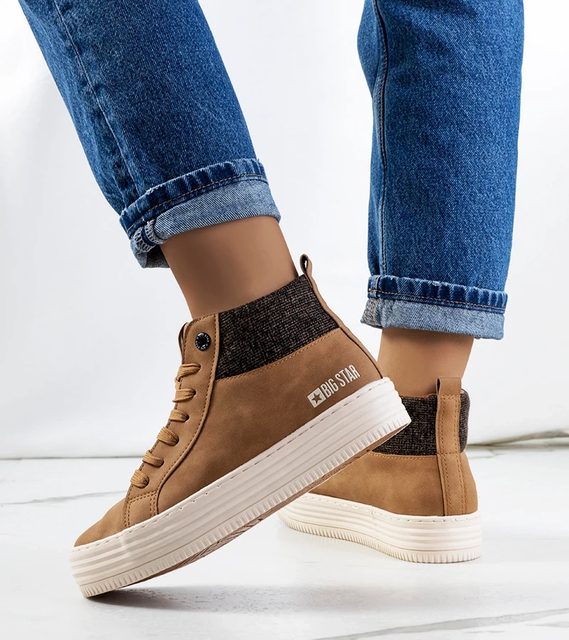 Wsuwane wysokie beżowe sneakersy ze złotą ozdobą