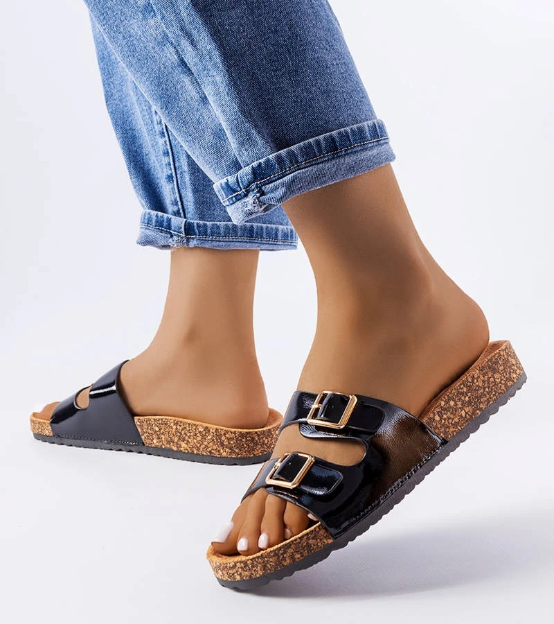 Hers Czarne klapki na korkowej podeszwie z klamerkami