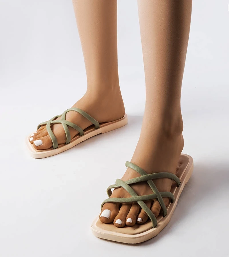 Hers Beżowe płaskie sandały zdobione cyrkoniami