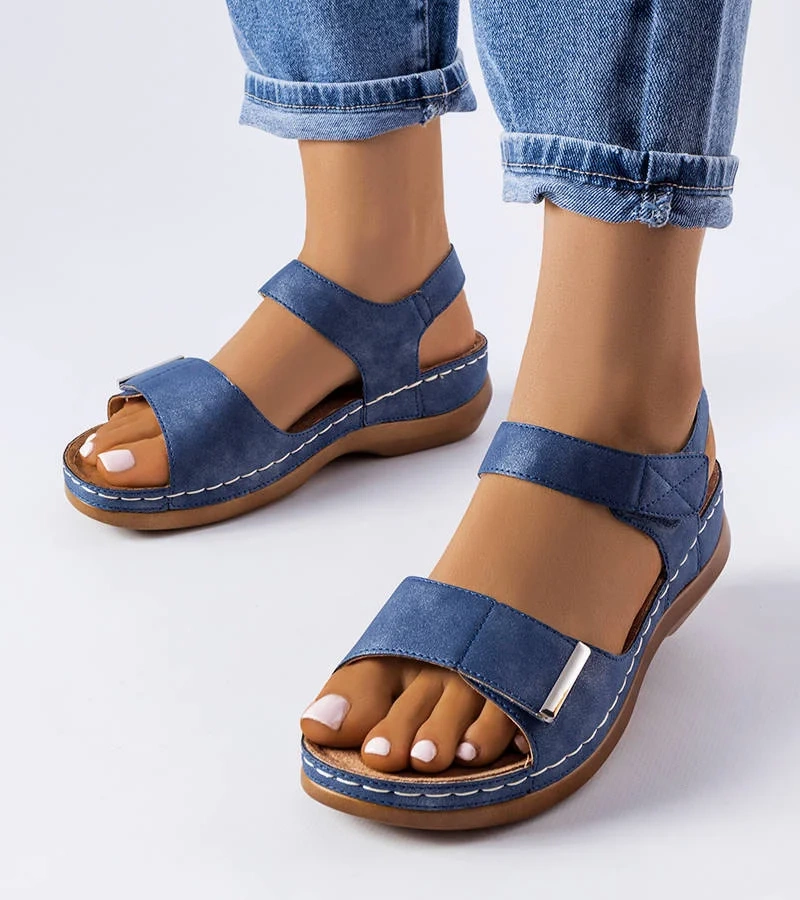 Granatowe klapki na korkowej podeszwie z klamerkami
