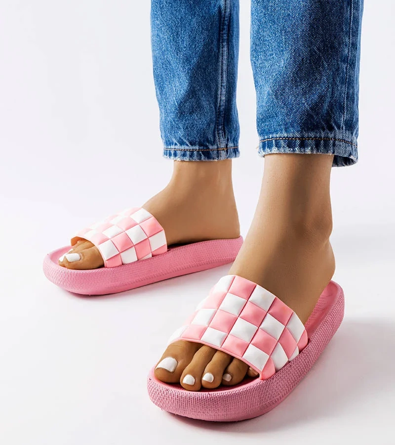 Różowe gumowe klapki na platformie