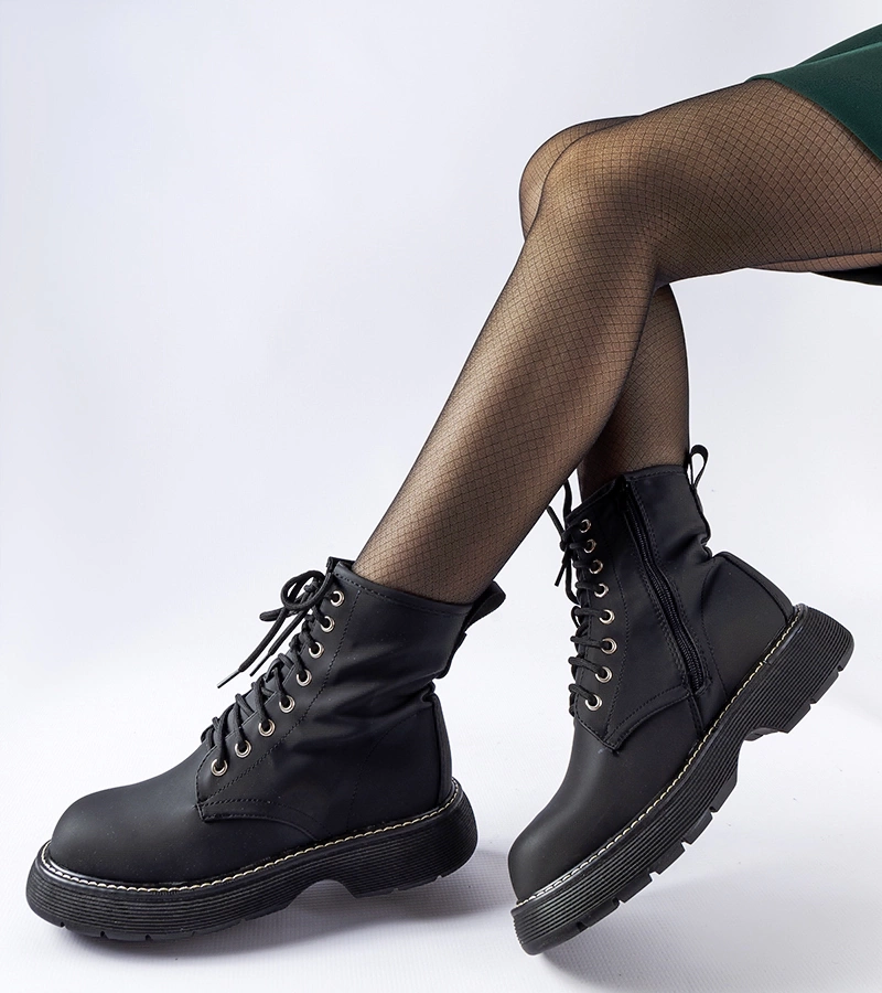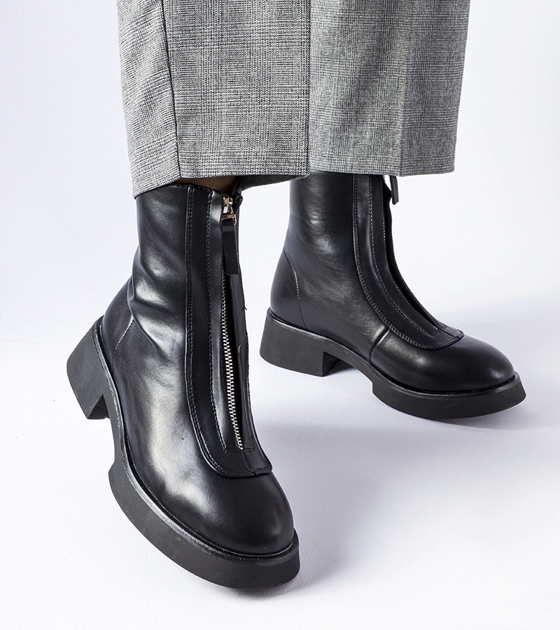 Czarne ocieplane botki z ozdobnymi łańcuchami
