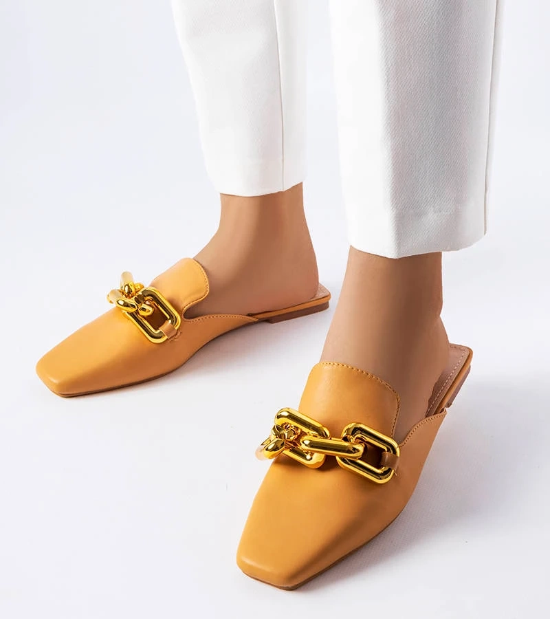 Złote mokasyny z efektownym zdobieniem