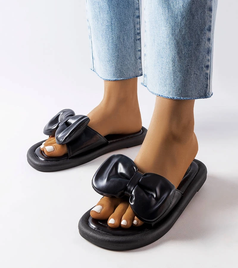 Czarne ażurowe balerinki zdobione cyrkoniami