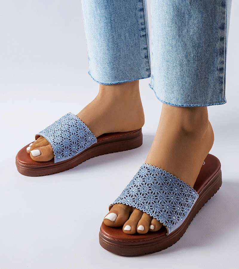 Niebieskie ażurowe klapki zdobione cyrkoniami