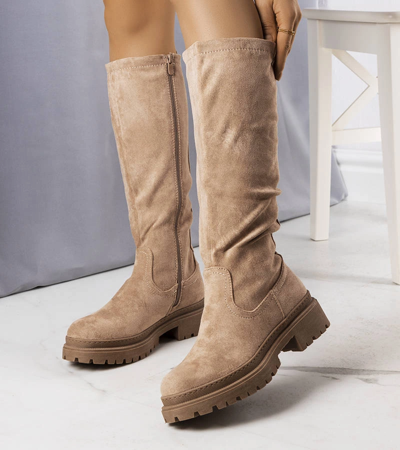( ilość produktów: 1 )Beżowe kozaki ocieplane z eko-zamszu