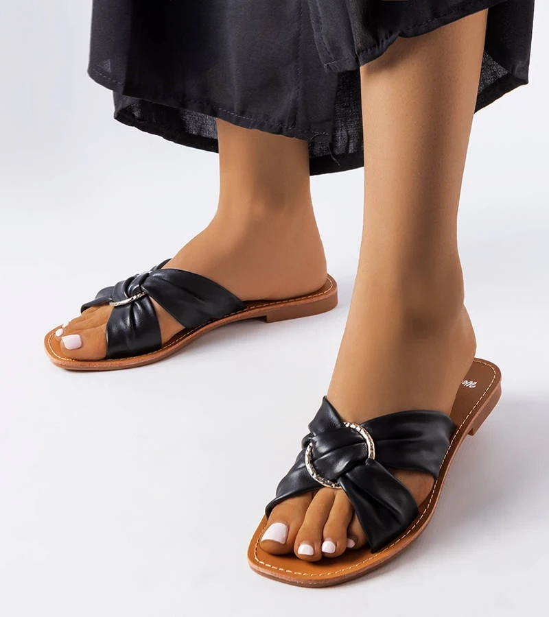 Czarne klapki zdobione łańcuchem