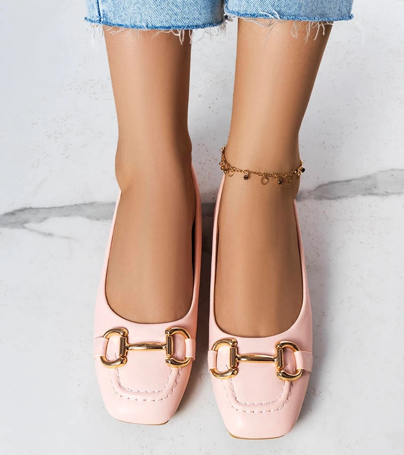 Beżowe balerinki ozdobną klamerką