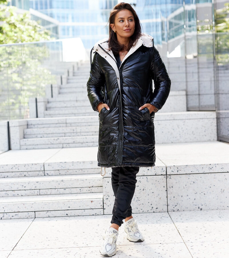 Czarne ocieplane botki z ozdobnymi łańcuchami
