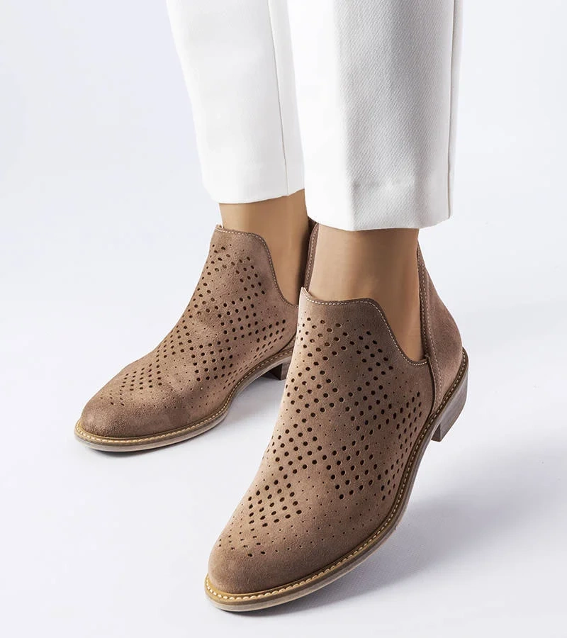 Jasnobrązowe ażurowe botki skórzane Karino